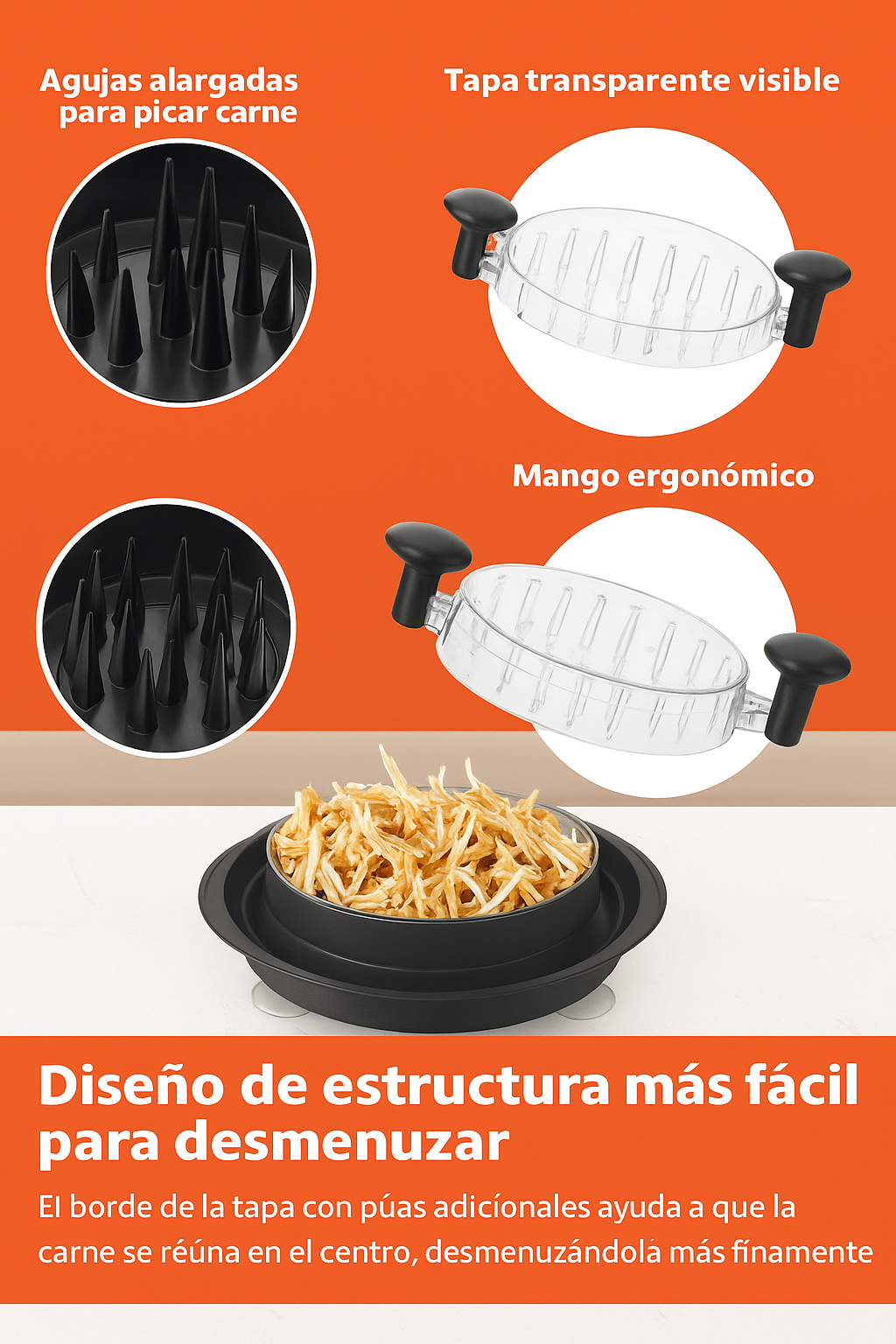 Este desmenuzador de pollo reforzado ofrece resistencia y durabilidad superiores para facilitar el proceso de desmenuzar. Su diseño robusto permite un manejo eficiente y seguro, ideal para uso doméstico o profesional, garantizando resultados uniformes y rápidos en cada uso. Perfecto para quienes buscan calidad y rendimiento en sus utensilios de cocina.